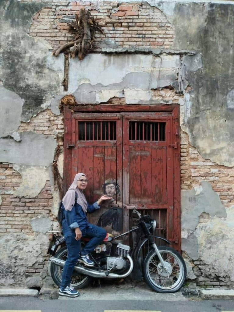 Penang Street Art adalah tempat untuk anda lihat kreativiti yang dilakar pada dinding bangunan. Di sini memang ramai pelancong dan masing-masing ambil peluang untuk bergambar dengan lukisan mural yang ada di sini.
