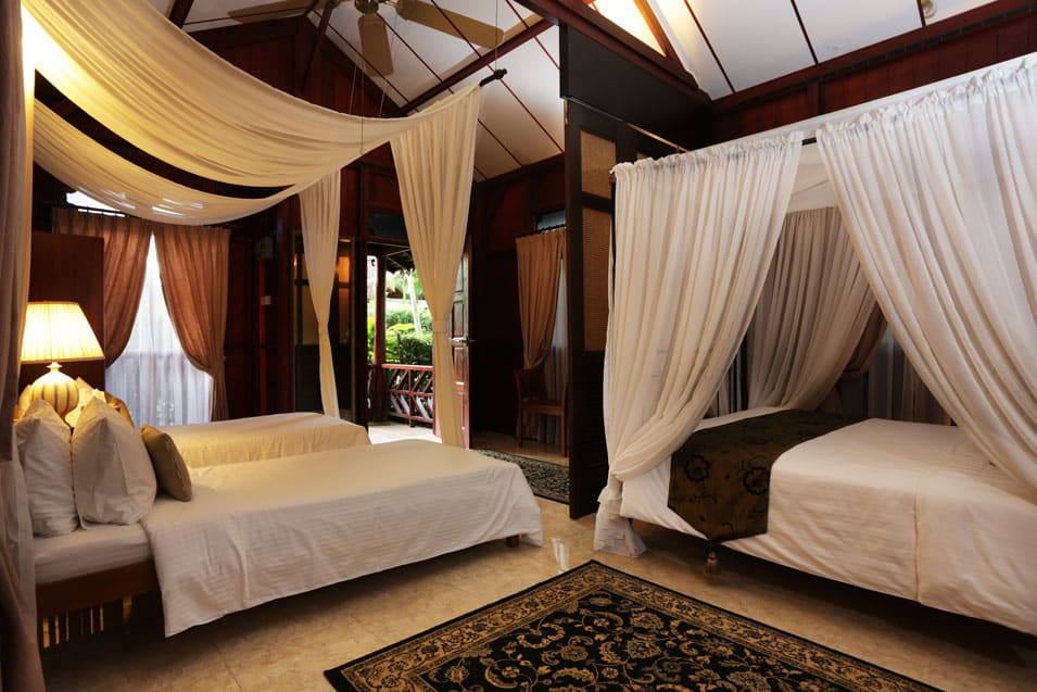 Ini ruang kamar di Aman Rimba Private Estate. Dekorasi ala-ala bali nusantara dekorasi. Anda nak berbulan madu, sesuai sangat menginap di sini.